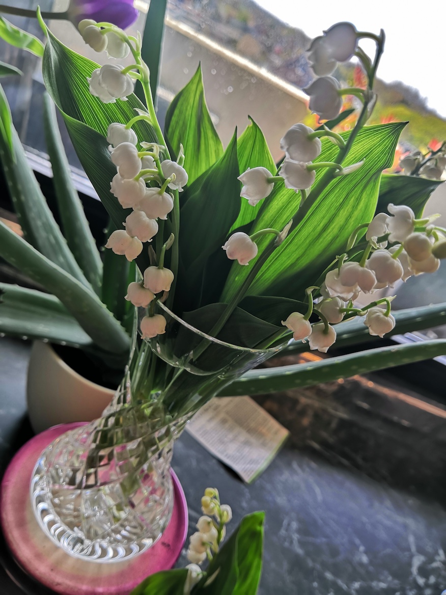 So, what is Lily of the valley? (this knowledge is from a herbal encyclopaedia, not my own knowledge) it is in Family Liliaceae, some of other common names are May Lily, May Bells, Convallaria, Our Lady’s Tears (what a name!), Convall-lily, Lily Constancy, Jacob’s Ladder, Ladder-to-Heaven, Muguet.