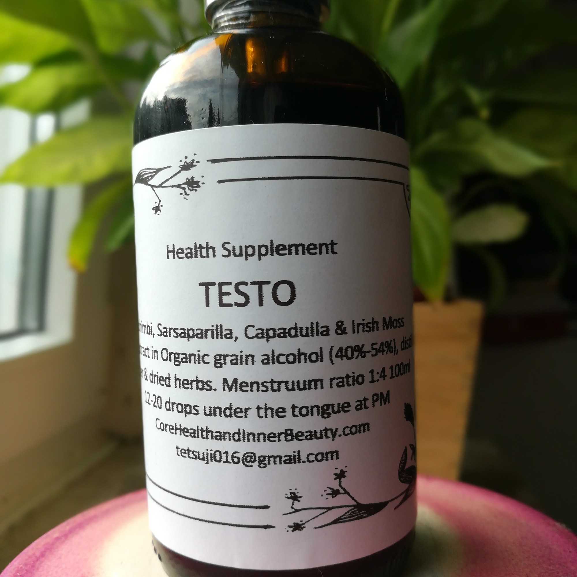 Sarsaparilla, Yohimbi, Locust bark, Capadulla & Irish Seamos. 1-Month supply 150 capsules made freshly to order only and will expire one year after opening. Please keep the lid airtight and away from children and natural sun light. Tincture is made with liquid extract in 40%-54% distilled sugar cane alcohol and dried herbs/menstruum ratio 1:4 (50ml, 100ml & 250ml) made May 2024 with expiry date April 2029.